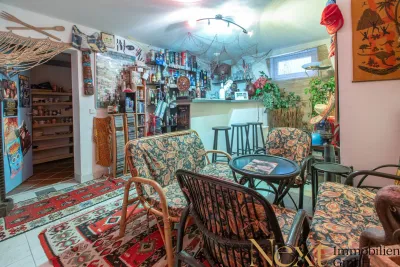 Im vollständig unterkellerten Bereich finden sich neben der Heizanlage, Haustechnik und Kellerräumen auch ein Fitnessraum sowie ein Partyraum mit Bar – ideal für gesellige Stunden. Ein Wirtschaftsraum und ein separater Vorratsraum schaffen zusätzlichen Platz und Komfort. Besonders hervorzuheben ist der in der Erde gelegene, temperierte Weinkeller, der für Weinkenner ein exklusives Extra darstellt. Der Keller ist sowohl über den Eingangsbereich im Inneren als auch über eine Außentreppe zugänglich.