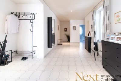 Das Anwesen bietet eine großzügige Wohnfläche von nahezu 324 m² und verteilt sich auf insgesamt 8 geräumige Zimmer über zwei Wohnetagen.
