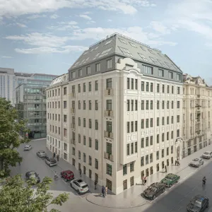 Die Ausstattung des Büros ist durchdacht und auf höchstem Niveau ausgeführt: elegante Terrazzoplatten, edle Flügeltüren und kunstvolle Jugendstilelemente verleihen den Räumen eine einzigartige Note, während modernste Technik höchsten Komfort gewährleistet. Die Materialien wurden sorgfältig ausgewählt, um den Anforderungen und Wünschen der zukünftigen Mieter gerecht zu werden.