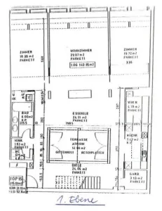 Mit einer Fläche von 215,01 m² stehen Ihnen fünf helle Zimmer zur Verfügung. Die großen Fenster sorgen für ausreichend Tageslicht und schaffen eine angenehme Atmosphäre, während der Parkettboden den Räumen eine elegante Note verleiht.