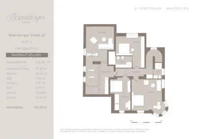 - Wohnnutzfläche: Großzügige 223,13 m², die sich über 3 prachtvolle Stockwerke erstrecken.