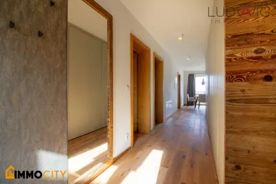 Die Wohnung selbst ist modern gestaltet und mit allem Komfort ausgestattet um ein angenehmes und hochwertiges Wohngefühl zu gewährleisten. Große Fensterfronten sorgen für lichtdurchflutete Räume und die exklusive Ausstattung mit vielen Holzelementen garantiert Wohlfühlatmosphäre. Das Besondere an dieser Wohnung ist gewiss die abgetrennte Einliegerwohnung. Direkt neben der großen Penthousewohnung gelegen, ist diese abgetrennte Einheit ideal für Gäste oder eine zweite Generation - jedem ist sein privater Rückzugsort garantiert.