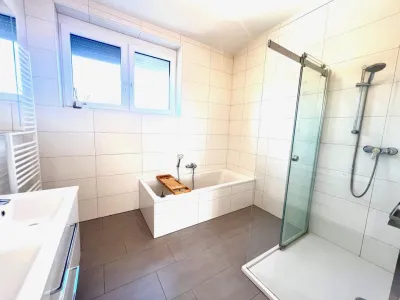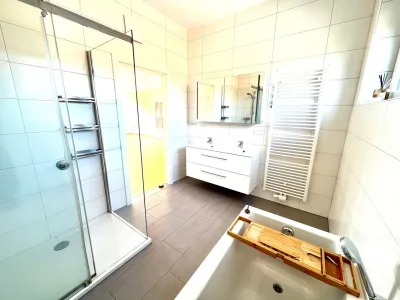 - Wunderschönes Badezimmer mit Badewanne und Dusche