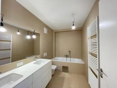 Die hochwertigen Materialien fallen beim Betreten der Wohnungen sofort ins Auge – in den Wohnräumen wurde ein warmer Holzdielenboden verlegt, die Bäder wurden mit Steinfliesen, exklusiver Keramik sowie zeitlosen Armaturen ausgestattet. Trotz der großzügigen Fensterfronten wird den zukünftigen Bewohnern maximale Privatsphäre aufgrund der angrenzenden sowie gegenüberliegenden Grün- und Gartenflächen geboten. Die Küchen sind bereits mit hochwertigen Geräten vollausgestattet und einsatzbereit.