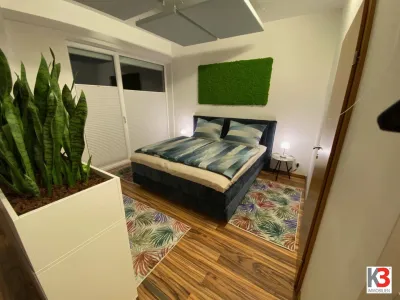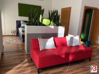 1 großer Wohnbereich mit Fernseher, Couch, Hydrokultur, ....