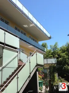 Vom PKW Stellplatz (in einem umzäunten Privatareal), wo sich auch eine E-Ladesäule befindet, gelangen sie über einen eigenen Zugang / Treppe in das 1.OG wo sich das "BÜRO & WOHNEN" befindet.