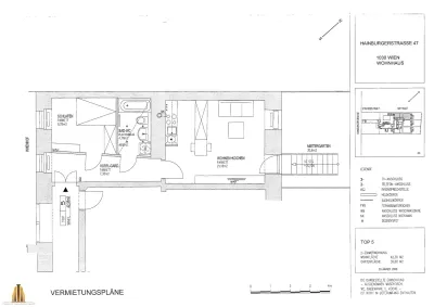 TOP 5 im Hochparterre befindliche Gartenwohnung verfügt über zwei Zimmer mit ca. 43 qm und einer Gartenfläche von 30,6qm. Sie kostet € 318.000,-, Betriebskosten € 95,50: