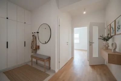 Mit einer großzügigen Fläche von 55,86 m² verteilt auf 2 helle Zimmer, ist diese Immobilie perfekt für Singles, Paare oder kleine Familien geeignet. Die durchdachte Raumaufteilung sorgt dafür, dass Sie jeden Zentimeter optimal nutzen können. Die stilvollen Fliesen und das hochwertige Parkett verleihen der Wohnung einen eleganten Charakter, während die Fußbodenheizung für wohlige Wärme in den kühlen Monaten sorgt.