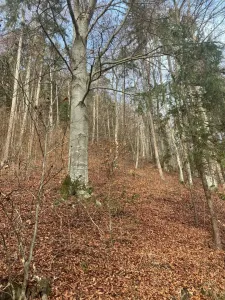 Es handelt sich hierbei um einen gepflegten, hanglagigen Buchen- Mischwald mit einer Größe von 2,6 Hektar.