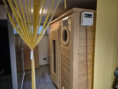 # großer Keller mit Sauna , Infrarotkabine und genügend Stauflächen