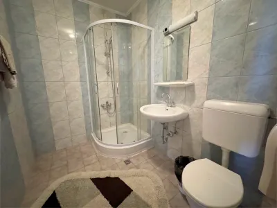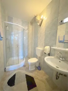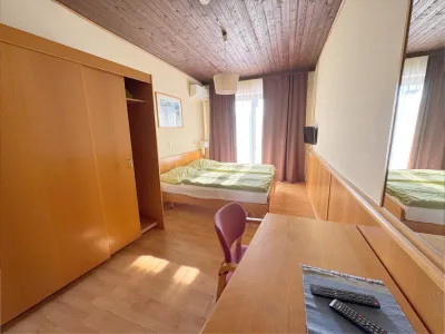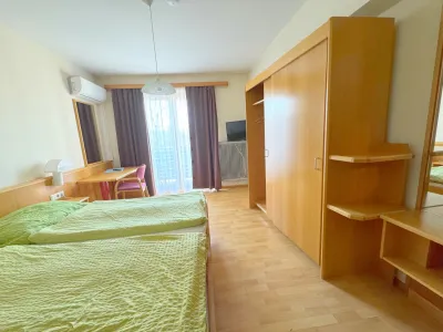 Im Obergeschoß befinden sich 8 Gästezimmer mit eigenem Bad und WC, wobei 7 Zimmer mit einer Klimaanlage ausgestattet sind.