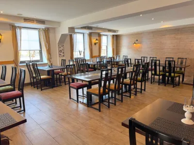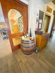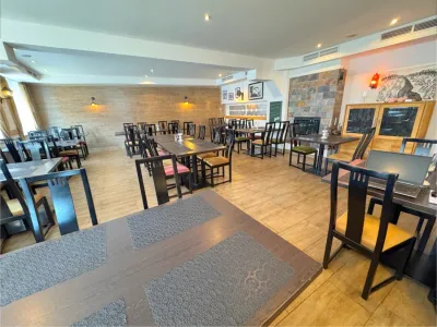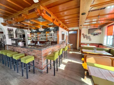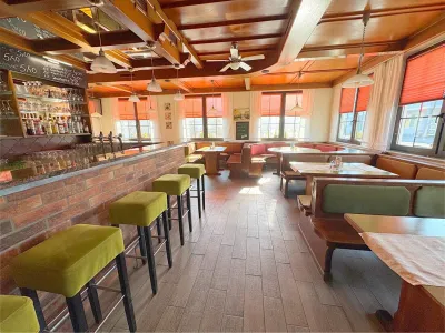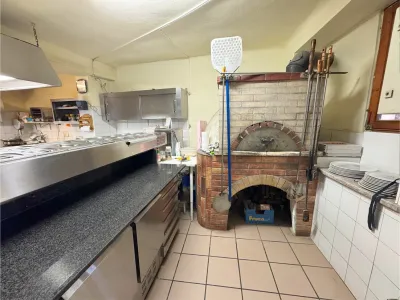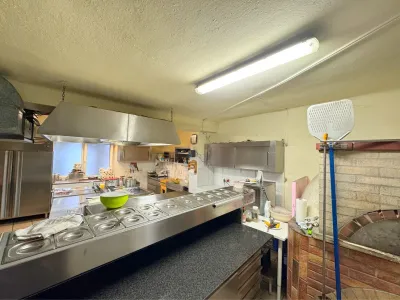 Im Erdgeschoß befindet sich ein Restaurant (ca. 90 Plätze) mit schöner Gaststube und einem großen Saal. Hier werden köstliche Pizzen (Holzpizzaofen) und weitere Köstlichkeiten serviert.