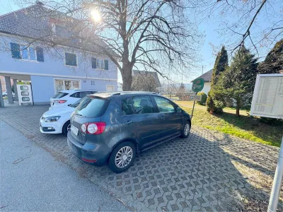 Parkplätz stehen im Hinterhof und gegenüber auf eigenem Grund, sowie eigens für das Gasthaus reservierte Parkplätze der Gemeinde zur Verfügung.
