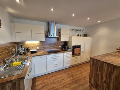 Die hellen und freundlichen Räume laden zum Wohlfühlen ein. Große Fenster sorgen für viel Tageslicht und schaffen eine angenehme Atmosphäre, die zum Entspannen einlädt. Die moderne Küche, ausgestattet mit hochwertigen Geräten, ist der perfekte Ort, um kulinarische Köstlichkeiten zuzubereiten und gesellige Abende mit Freunden und Familie zu verbringen.