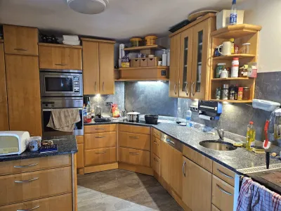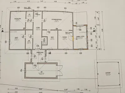 Vom Eingangsbereich aus gelangen Sie einerseits zu einem 16 m²großen Raum, welcher derzeit als Bar genutzt wird. Dieser kann aber auch problemlos zu einem Hobbyraum oder Jugendzimmer umfunktioniert werden. Andererseits gelangen Sie vom Eingangsbereich aus zum eigentlichen Wohnbereich. Durch einen Vorraum gelangen Sie zum großzügigen Wohn-Essbereich mit anschließender Küche, sowie zum Wintergarten.