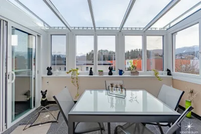 Der Mittagskogel und der Dobratsch sind von der Dachterrasse aus in direkter Sicht, und die nordseitig sichtbare Gerlitze lädt zum Schifahren und Wandern ein.