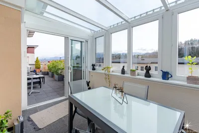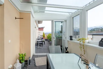 Eine Loggia mit angrenzender Dachterrasse (Ausrichtung nach Süden) bietet sowohl im Sommer als auch Winter die Möglichkeit, sich gemütlich mit einem Buch zurückzulehnen und den Tag ausklingen zu lassen bzw. das Wochenende dementsprechend genießen zu können.