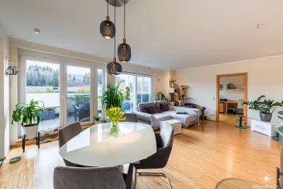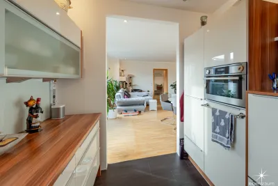 Die Dachgeschoßwohnung mit 5 Zimmern besticht nicht nur durch lichtdurchflutete Räume, nicht nur durch die Großzügigkeit der Räume, sondern vor allem durch die Qualität der Ausstattung sowie durch wunderbare Ausblicke.