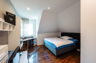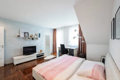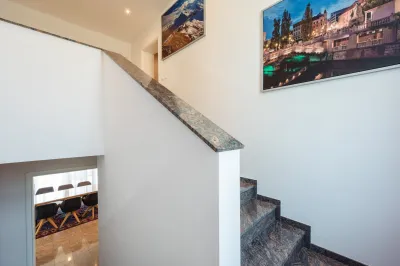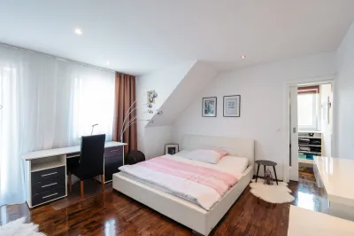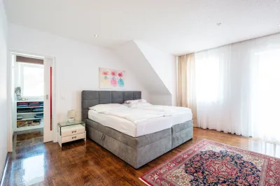 Die Wohnfläche von ca. 317 m² erstreckt sich über drei Ebenen und beherbergt auch eine Gästewohnung mit separatem Eingang.