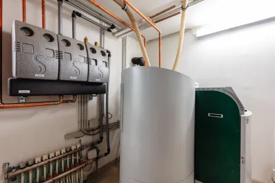 Das Haus wird mittels einer Pelletsheizung beheizt, die Wärmeverteilung erfolgt über die Fußbodenheizung.