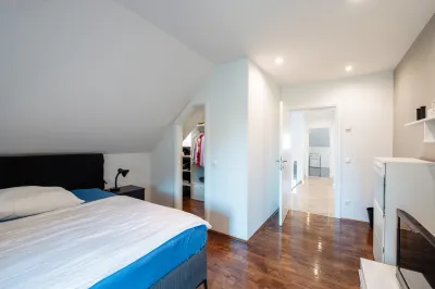 Diese moderne Villa wurde im Jahr 2012 in Ziegelmassiv-Bauweise mit Bedacht auf Eleganz und Wohlbehagen errichtet und besticht u.a. durch die offene, großzügige Innenraumgestaltung.