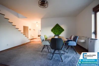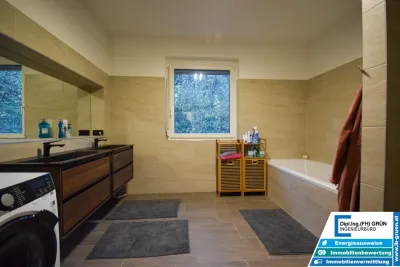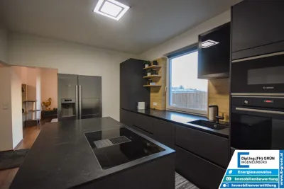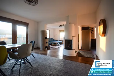 Das Herzstück des Hauses ist der offen gestaltete Wohnbereich im Erdgeschoss, der durch große Fensterfronten mit Tageslicht durchflutet wird. Ein Kamin im Wohnzimmer sorgt an kühleren Tagen für eine besonders gemütliche Atmosphäre. Die moderne Wohnküche mit hochwertigen Geräten ist perfekt für gesellige Abende, während die neu gestalteten Bäder und Sanitärräume höchsten Komfort bieten.