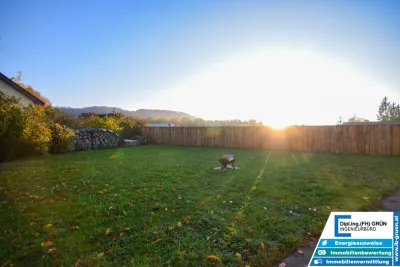 Neben großzügigen Wohnräumen beeindruckt das Anwesen durch einen weitläufigen, nach Süden ausgerichteten Garten. Auf einem 1.572 m² großen Grundstück genießen Sie hier absolute Privatsphäre und viel Platz zum Entspannen, Spielen und Gärtnern – der perfekte Rückzugsort im Freien.