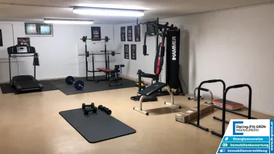 Im Untergeschoss erwartet Sie zudem ein großzügiger Fitnessraum, der Ihnen direkt im Haus die Möglichkeit bietet, sich sportlich zu betätigen und fit zu bleiben.