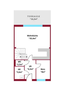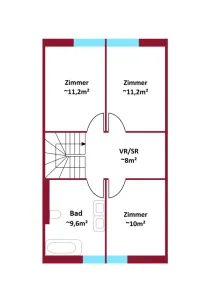 - Vorraum, aus dem jeder Raum zentral begehbar ist