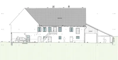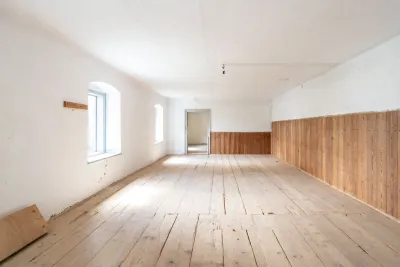 Für Projektentwickler eröffnet die Widmung als Dorfgebiet (ca. 2.600 m²) zusätzliche Perspektiven. Im Hauptgebäude könnten – nach Abstimmung mit der Gemeinde – bis zu elf Wohneinheiten entstehen. Voraussetzung dafür ist die Umsetzung entsprechender Stellplätze am Grundstück, wobei bereits mehrere Garagen und zusätzliche Parkmöglichkeiten vorhanden sind.