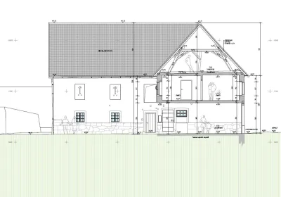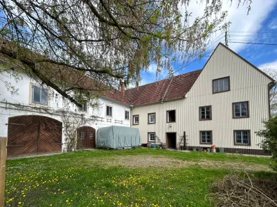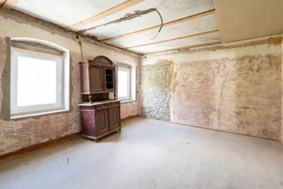 Das charmante Bestandsgebäude bietet eine Wohnfläche von über 680 m² sowie zusätzlich fast 930 m² an vielseitig nutzbarer Fläche. Die Bausubstanz stammt aus früheren Zeiten und ist entsprechend sanierungsbedürftig, wobei bereits erste Modernisierungsmaßnahmen – etwa der Tausch von Fenstern, Türen sowie Teilbereiche der Haustechnik – umgesetzt wurden. Kanal-, Wasser- und Straßenanschluss sind vollständig bezahlt, was künftigen Eigentümer zusätzliche Planungssicherheit gibt.