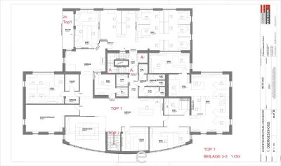 Die großzügige Bürofläche umfasst insgesamt 614m² im 1. OG eines modernen Gebäudes in Vorchdorf.