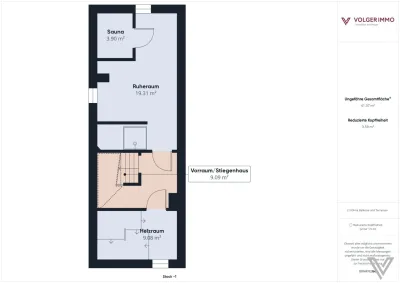 Kellergeschoß: Vorraum/Stiegenhaus, Sauna mit Dusche und Ruhebereich, Heizraum;