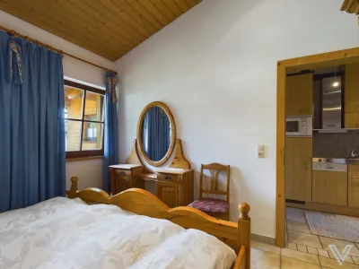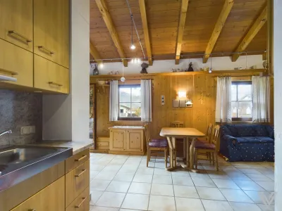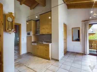 Einteilung Einliegerwohnung: Eingangsbereich, Wohnküche mit Ausgang auf den Balkon mit herrlichem Blick auf die Berge, Schlafzimmer und Bad mit WC;