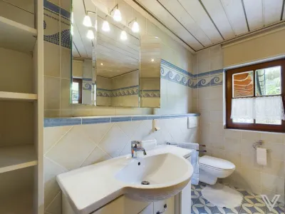 Erdgeschoß: Vorraum/Eingangsbereich, Küche, Wohnzimmer mit gemütlicher Couch, Essbereich und Ausgang in den idyllischen Garten, Speis, Abstellraum (kann auch als Dusche genutzt werden) und WC mit Waschbecken. Zusätzlich ein geräumiger Lagerraum im Außenbereich, der von der Terrasse zugänglich ist.