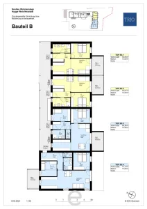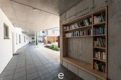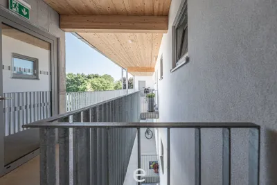 Extrabreite Laubengänge sowie ein spezieller Lift machen es einfach mit dem Rad bis zur Wohnungstür zu fahren, unabhängig in welchem Stockwerk Sie wohnen. Als weiteres Highlight stehen den EigentümerInnen auch ein eigenes E-Lastenrad sowie zwei weitere E-Bikes zur gemeinsamen kostenfreien Nutzung zur Verfügung - Trio.Mobilitätskonzept.