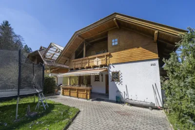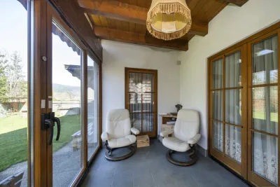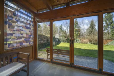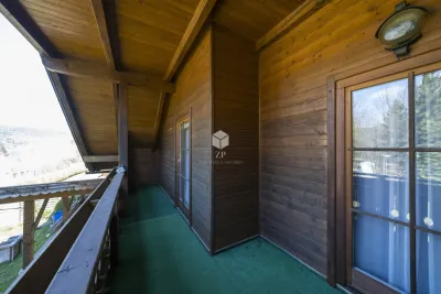 Der Außenbereich dieser Immobilie ist ebenso beeindruckend wie das Innere. Ein wunderschöner Garten lädt zu entspannten Stunden im Freien ein, während die beiden Balkone und die Terrasse perfekte Rückzugsorte bieten, um die Sonne zu genießen oder den atemberaubenden Blick auf die umliegende Natur zu bewundern. Hier können Sie Ihre Gäste empfangen, Grillabende veranstalten oder einfach nur die frische Luft und die Ruhe der Umgebung genießen.