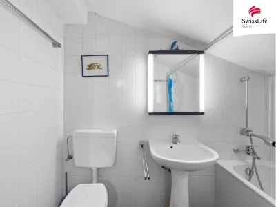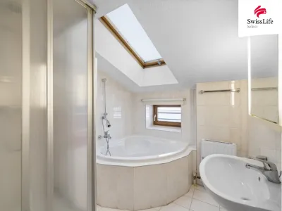 - Zwei Bäder mit Badewanne, Waschbecken und Toilette, eines davon mit zusätzlicher Dusche