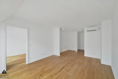 Der hochwertiger Parkettboden und die moderne Ausstattung lassen jedes Wohnherz schneller schlagen - die nagelneue Fußbodenheizung mit Luftwärmepumpe, die hohen Innentüren mit Kassetten und Holzumfassungszargen runden das Gesamtbild ab!