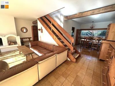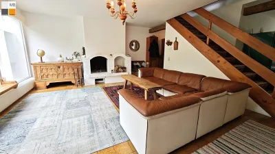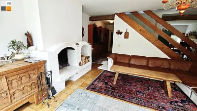 Großzügiger Wohn-/Essbereich mit gemauertem Kaminofen & Süd-Ausrichtung