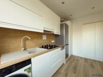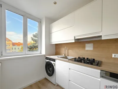 - eine hochwertige Einbauküche mit Markengeräten (Gorenje/Beko) wie z. B. eine Gefrierkombination, Backrohr, Mikrowelle, Gas-Herd sowie eine Waschmaschine