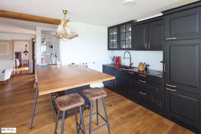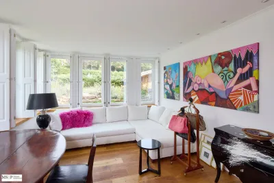 Der wahre Charme dieser Liegenschaft eröffnet sich jedoch erst, wenn man durch die Eingangstüre tritt. Das Haus wurde von der jetzigen Eigentümerin mit viel Liebe zum Detail renoviert und eingerichtet, Skandinavien trifft hier auf die Provence, Design auf Antiquitäten, moderne Technik und Installationen auf offene Kamine und behaglichen Wohnkomfort.