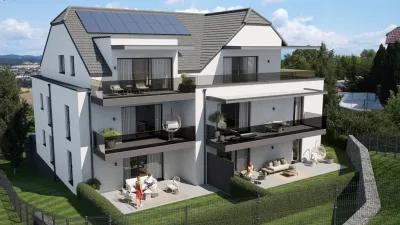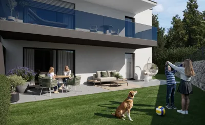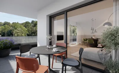 - Jede Einheit bietet großzügige, südseitige Freibereiche – wahlweise als Eigengarten, Terrasse oder Balkon (teils überdacht, bis zu 55 m²)