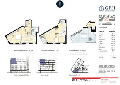 Zum Verkauf gelangt eine zum Erstbezug ca. 95 m² große Maisonette-DG-Wohnung mit großer Dachterrasse ca.34 m² in bester Lage des 20. Wiener Gemeindebezirk gelegen.