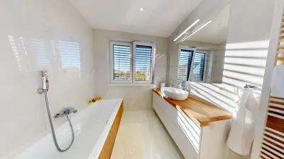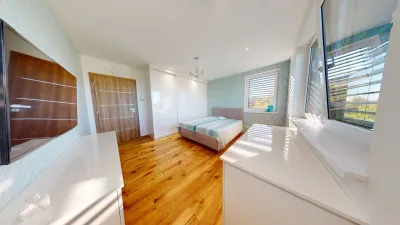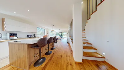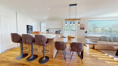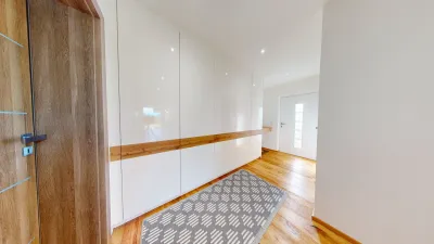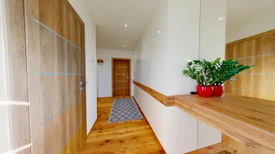 Das im Jahr 2020 erbaute Einfamilienhaus wurde im Hause des Architekturbüro von Ing. Eigner geplant und bis ins letzte Detail durchgedacht. Der Bauherr legte besonders viel Wert auf die Verwendung von nachhaltigen und ökologischen Baumaterialien und vor allem auf eine umweltfreundliche Heizungsart. Mit einer Luftwärmepumpe in Kombination mit einer Photovoltaikanlage ist das Haus mit dem Besten vom Besten ausgestattet und hat somit geringe Heiz und Stromkosten. Über die Fußbodenheizung können Sie das gesamte Haus heizen und auch kühlen, so sorgen Sie bequem für ein angenehmes Raumklima. Die maßangefertigte Küche mit moderner Kochinsel ist mit Bosch Geräten ausgestattet und fügt sich perfekt in das Gesamtdesign des Hauses ein. Ein weiteres Highlight ist die Doppelgarage mit angrenzendem Büro und einem WC. Das lichtdurchflutete Wohnzimmer, im nördlichen Teil des Hauses, beeindruckt durch seine riesige Fensterfront und über die raumhohen Schiebefenster gelangt man auf die herrliche Terrasse aus der man einen herrlichen Grünblick genießen kann und sich im eigenem Garten entspannen kann. Im unteren Teil des Hauses befindet sich noch ein Master-Bedroom mit einem begehbaren Kleiderschrank , einem privatem Badezimmer ein getrenntes Wc sowie Wasch/Technickraum. Im OG befinden sich noch 3 Schlafzimmer sowie ein weiteres Badezimmer mit Badewanne, Dusche und einem getrennten WC.