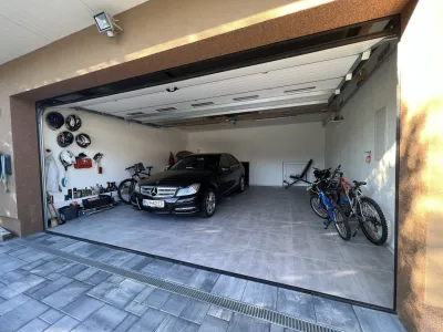 - Doppelgarage mit 36m², Vorbereitung einer E-Ladestation für Elektroautos, einem angrenzendem Büro und einem Wc