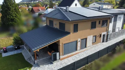 extrem Energiesparende Lufwärmepumpe + 14kW Photovoltaikanlage + 3-fach verglaste Schallschutzfenster mit Fliegengitter sowie elektrische Lamellen Jalousien + Doppelgarage + Vorplatz für bis zu 3 Pkw + Massivbauweise mit Ytong + Kamin im Wohnzimmer + hochwertige Küche mit Kochinsel und Bosch Geräte + Alarmanlage mit Videoüberwachung + 4 Schlafzimmer und vieles mehr...