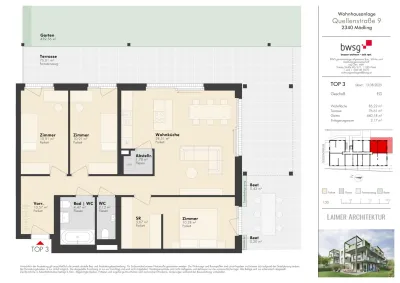 Quellenstraße 9, 2340 Mödling: Die Vorteile von städtischer Infrastruktur verbunden mit den Freizeitmöglichkeiten des Wienerwalds: Das ist die Lage von Midori. In der Umgebung laden der Naturpark Föhrenberge und die Burgruine Mödling zu Wanderungen und Spaziergängen ein. Das Stadtbad Mödling sowie Outdoor-Fitnesseinrichtungen und zahlreiche Lauf- und Wanderstrecken im Wienerwald bieten ideale Gelegenheiten für sportliche Aktivitäten. Kulinarisch wartet die nahegelegene Fußgängerzone mit gemütlichen Cafés, Heurigen und modernen Restaurants auf. Die öffentliche Verkehrsanbindung ist ausgezeichnet. In der Nähe befinden sich mehrere Buslinien, darunter die 259, 261, 265, 268 und 269, sowie die Stadtbuslinien 1 und 3. Der Bahnhof Mödling liegt ebenfalls in der Nähe, mit regelmäßigen Schnellzügen, die Wien in etwa 25 bis 30 Minuten erreichen. Mit dem Auto dauert die Fahrt über die Südautobahn etwa 20 bis 30 Minuten, und für sportliche Radfahrer gibt es eine Route durch den Wienerwald, die rund 1 bis 1,5 Stunden dauert.