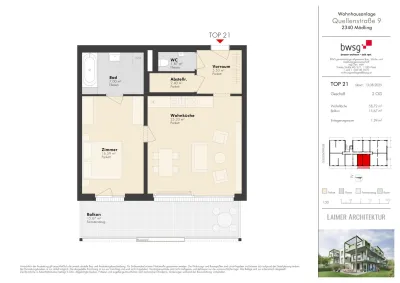 Quellenstraße 9, 2340 Mödling: Die Vorteile von städtischer Infrastruktur verbunden mit den Freizeitmöglichkeiten des Wienerwalds: Das ist die Lage von Midori. In der Umgebung laden der Naturpark Föhrenberge und die Burgruine Mödling zu Wanderungen und Spaziergängen ein. Das Stadtbad Mödling sowie Outdoor-Fitnesseinrichtungen und zahlreiche Lauf- und Wanderstrecken im Wienerwald bieten ideale Gelegenheiten für sportliche Aktivitäten. Kulinarisch wartet die nahegelegene Fußgängerzone mit gemütlichen Cafés, Heurigen und modernen Restaurants auf. Die öffentliche Verkehrsanbindung ist ausgezeichnet. In der Nähe befinden sich mehrere Buslinien, darunter die 259, 261, 265, 268 und 269, sowie die Stadtbuslinien 1 und 3. Der Bahnhof Mödling liegt ebenfalls in der Nähe, mit regelmäßigen Schnellzügen, die Wien in etwa 25 bis 30 Minuten erreichen. Mit dem Auto dauert die Fahrt über die Südautobahn etwa 20 bis 30 Minuten, und für sportliche Radfahrer gibt es eine Route durch den Wienerwald, die rund 1 bis 1,5 Stunden dauert.