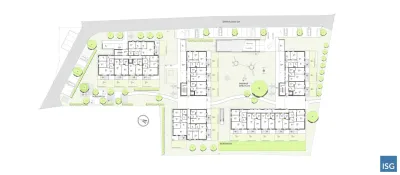 Die Wohnanlage umfasst 3 Wohnhäuser mit insgesamt 61 Mietwohnungen mit Kaufoption, bestehend aus 34 kompakten Zweiraumwohnungen mit ca. 60 m², 21 geräumigen Dreizimmerwohnungen und 6 familienfreundlichen Vierraumwohnungen verteilt auf 3 Stockwerke. Jede der Wohnungen verfügt über eine ca. 8 m² große Loggia, 19 Wohnungen überzeugen außerdem mit einem kleinen Eigengarten mit etwa 30 m².